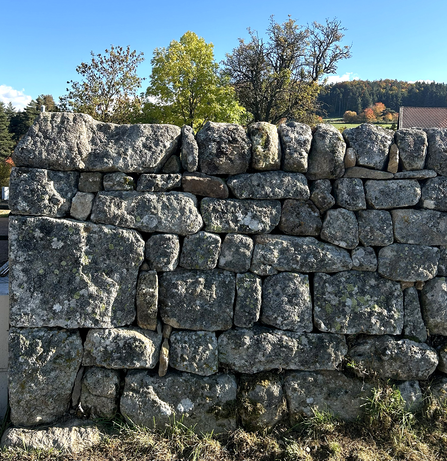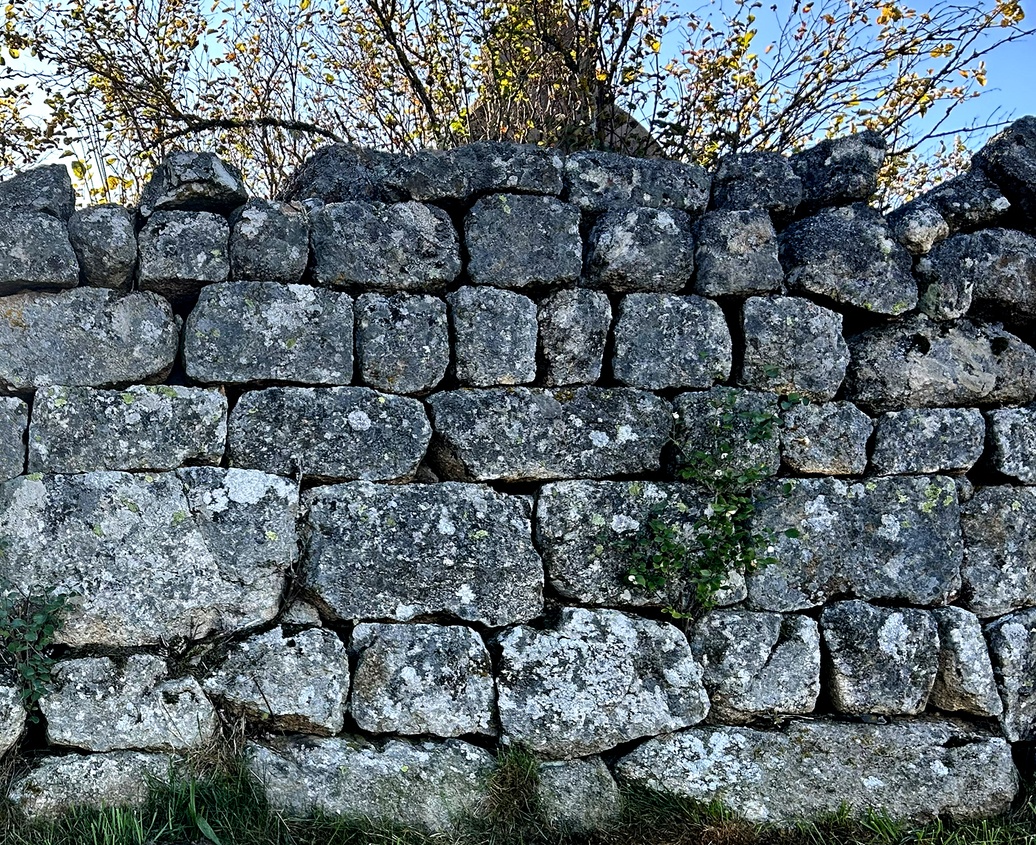 parement extérieur pierre sèche du mur d’enceinte du cimetière de Lafarre