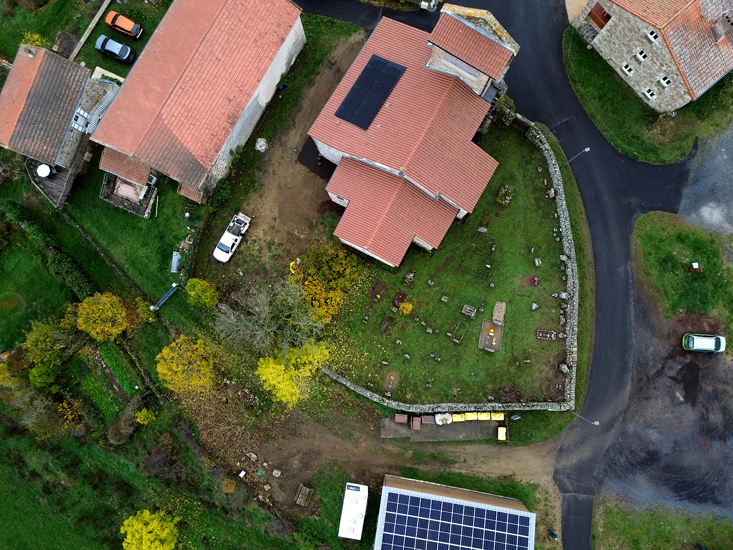 vue aérienne du mur d’enceinte du cimetière de Lafarre en Haute-Loire